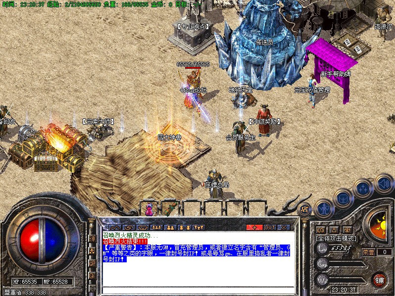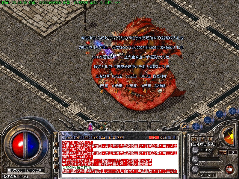 八.【特殊刷新】用魔法神石在土药旁边的魔法结阵可召唤出蚩尤.同时可获得丰富的奖品.--即本服的所有装备都可送出!