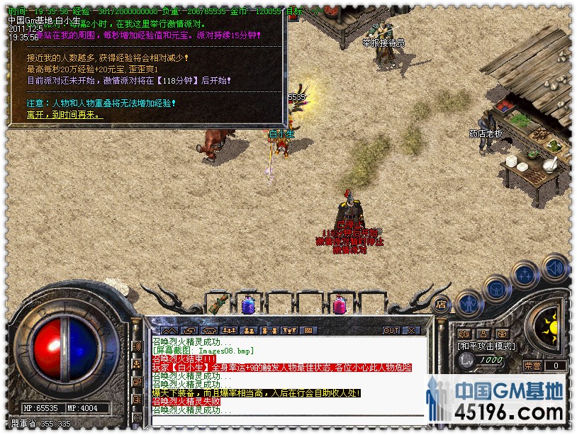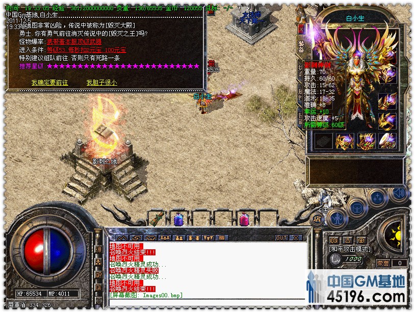 16.系统在63级送毁灭战甲,65级送毁灭之剑,自动发放,全服提示