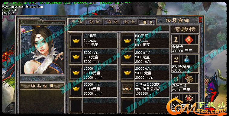 【更新】更新转生系统,1-12转,转生后每转都可以获得相应属性点,每转可获得强悍技能.超牛的装备。详情请看转生使者!