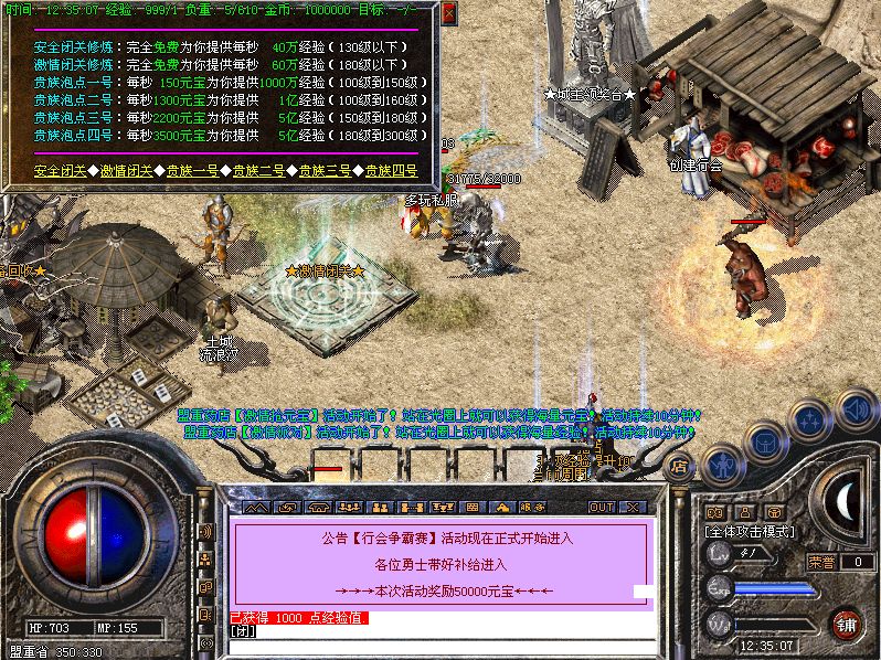 首次攻沙大家不用交头像,沙城老大奖励100万元宝以致鼓励!!本游戏最高等级限制300级、升级快、装备好打、无法替代的PK快感、本服活动多多,精彩不容错过!