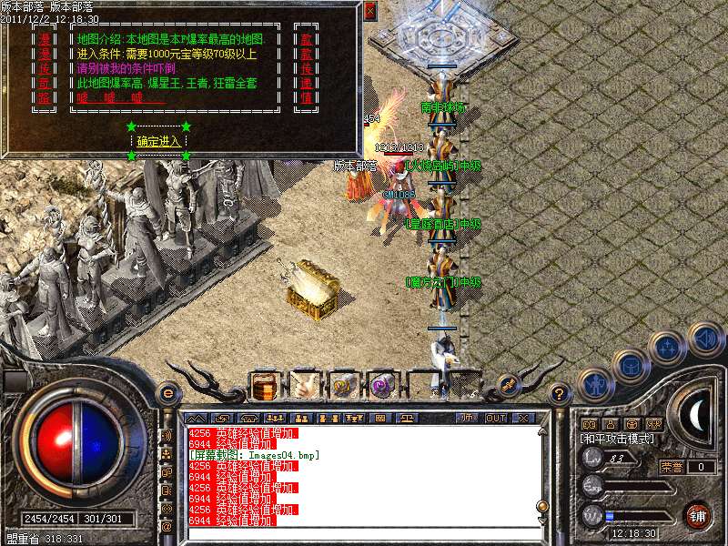 特别提示:本F经验宝箱和超级VIP泡点,升级较快,各地图装备好打.....