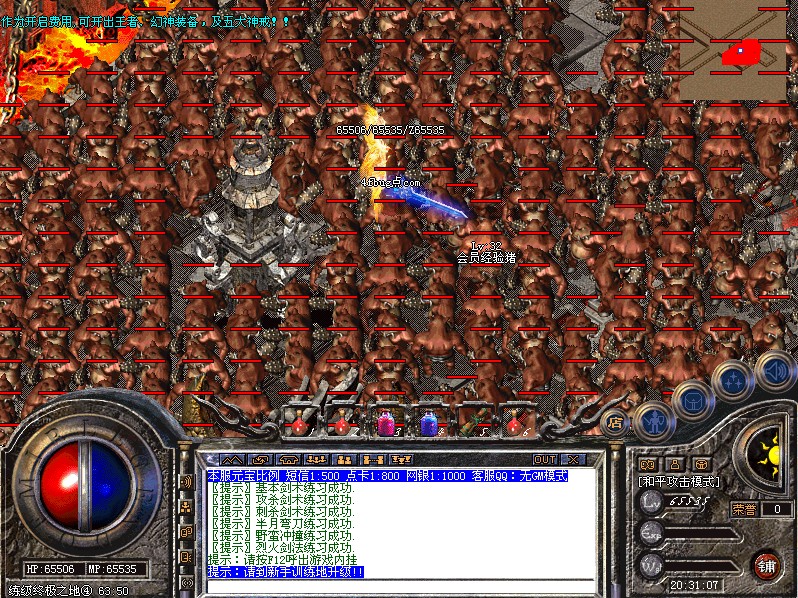 我们做到所有终极BOSS都能免费打到,狂暴之地,免费进入,里面刷暗神总帅出暗神装备,玛雅终极魔和邵合天皇出鸿运装备。每天的千魔斩杀活动,刷鸿运法神。鸿运道神。鸿运战神。出特戒和鸿运装备,所有怪物免费打!!!