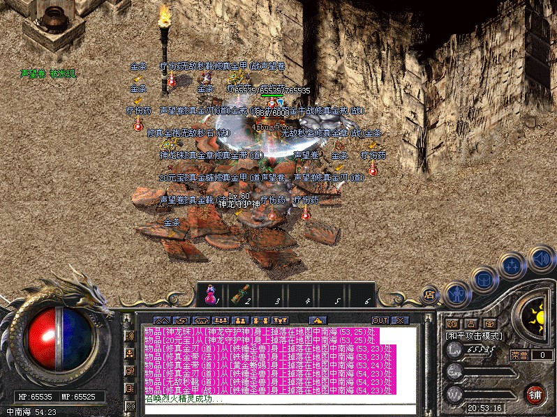 采用一键回收系统,回收奖励既有元宝要有经验,爆出的所有装备都能回收,轻轻松松1小时打2万元宝。