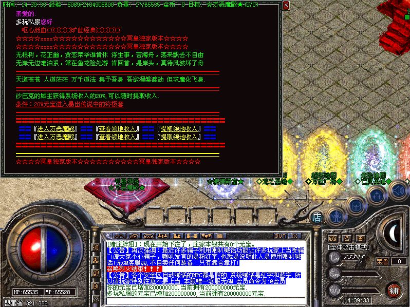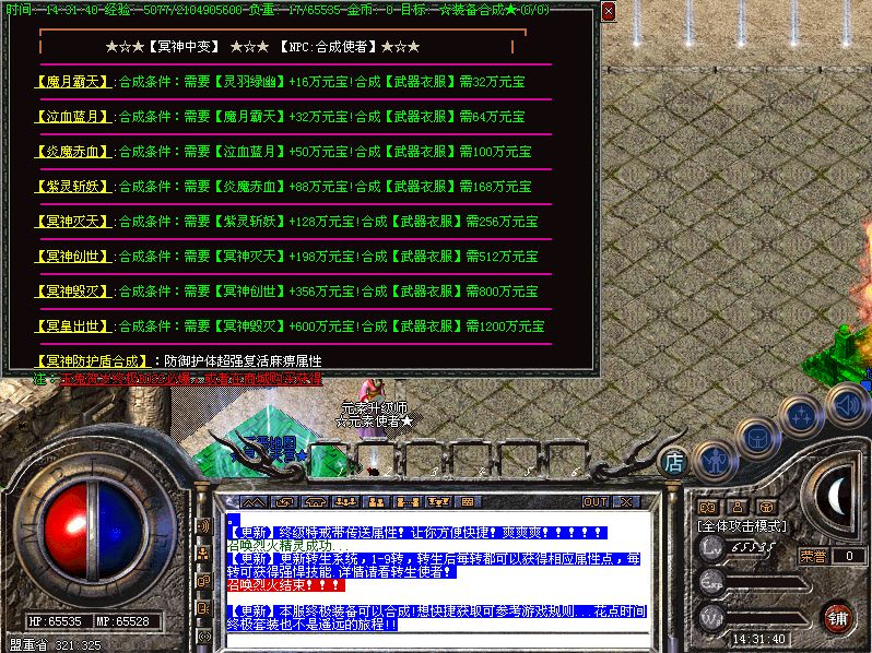 【更新】更新转生系统,1-9转,转生后每转都可以获得相应属性点,每转可获得强悍技能.详情请看转生使者!