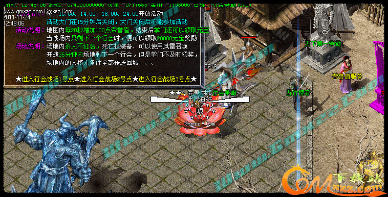 【行会争霸】每天开放四次行会争霸活动 参赛玩家在场地内享受超高荣誉值增加 获胜的掌门人奖励2万元宝