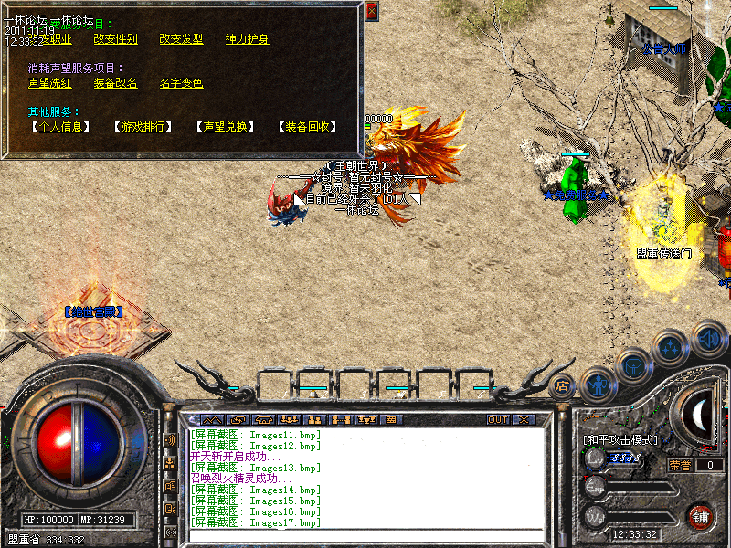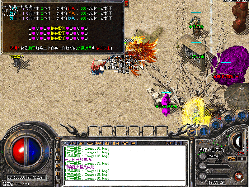 比奇皇宫提供行会战必须的场所。在比奇皇宫中杀人不红名,不同行会自动变色!