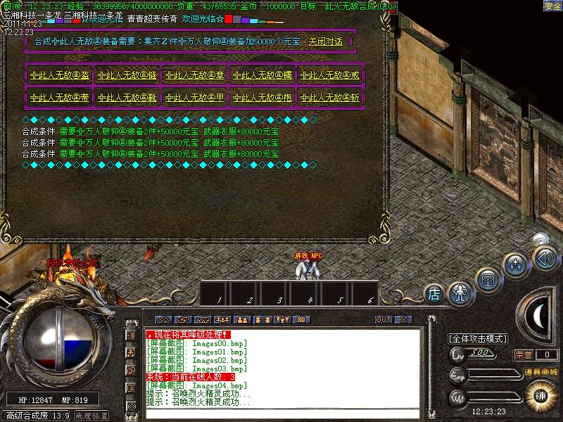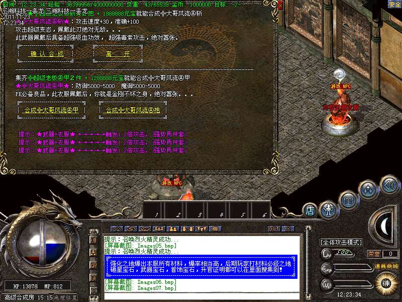 功能:装备合成师,装备回收系统,激情派对,装备锻造,元素使者,转生系统等。。