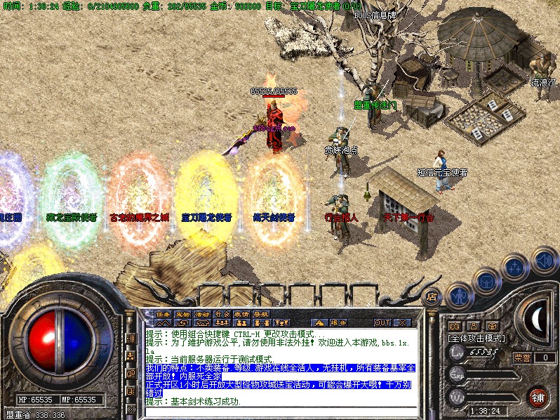 特别地图:王者天堂为打宝天堂,每天15点.19点.0点开放.此地图任何大小怪物都可以有机率暴出赤月类装备和雷霆.战神装备.王者魔王可暴出终极武器!