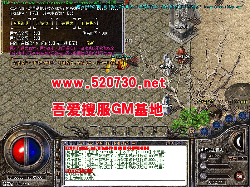<255,56>提示:登陆本服务器需要专用登陆器,否则不能登陆,按F12呼出自带内挂,封穿人穿怪。禁止使用各种加速外挂、脱机外挂,一旦发现不管大号小号一律删号封IP处理!
