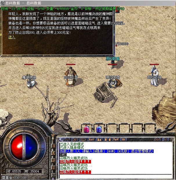 〖提示〗:本服务器为长期服,拒绝家族形式玩家,禁止外援,45级以下禁止攻城!为避免被删号,家族玩家请绕行,谢谢合作!晚9点到10点之间,藏宝阁沙巴克秘史可以传送进入皇宫!