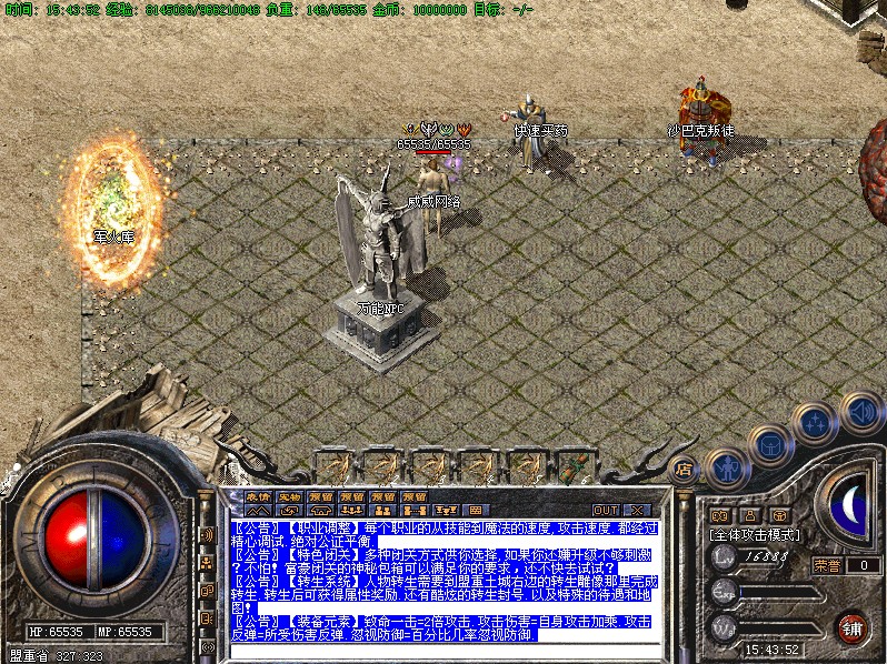 【转生系统】人物转生需要到盟重土城右边的转生雕像那里完成转生.转生后可获得属性奖励.还有酷炫的转生封号.以及特殊的待遇和地图!