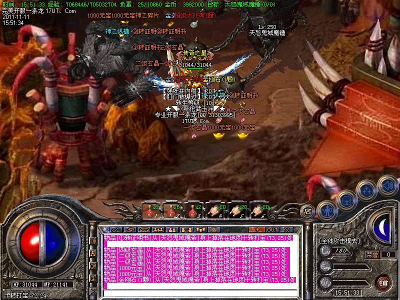 ⑦.【魔族统领】:每隔3小时自动开启一次,激情殿堂刷1只魔族统领,杀死后爆<终极装备>
