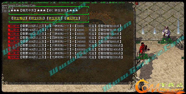 【更新】更新转生系统,1-9转,转生后每转都可以获得相应属性点,每转可获得强悍技能.详情请看转生服务