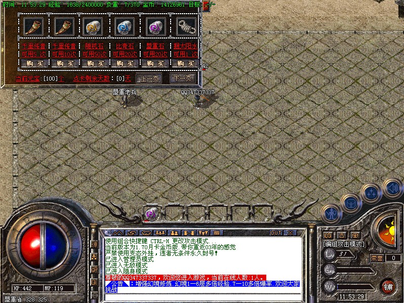 本为复古03年的.有幻境.幻境1-6为双倍经验.7-10为双倍爆率...进入幻境需要1天点卡时间