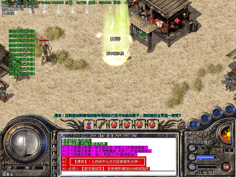 〖提示〗服务器开放了装备合成功能,可以拿中级装备合成高级装备,详细介绍见土城左下角NPC!