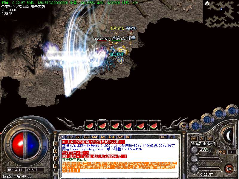 4.道士180级召唤2只强化白虎圣兽,附带麻痹属性..龙王¢圣¢斩以上的武器全部附带毒素属性,牛B不只一点点..
