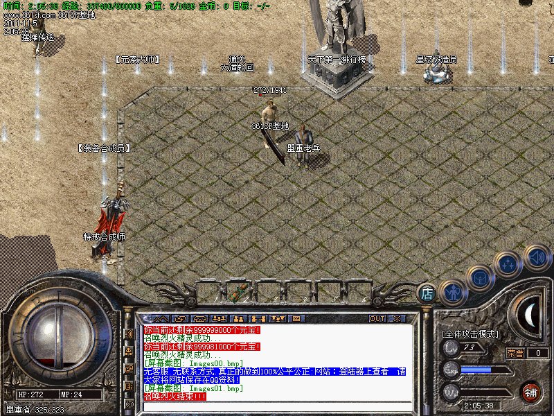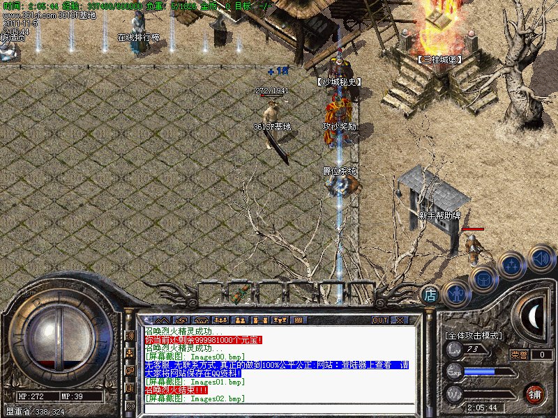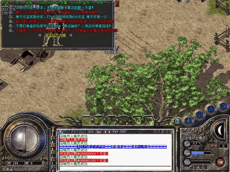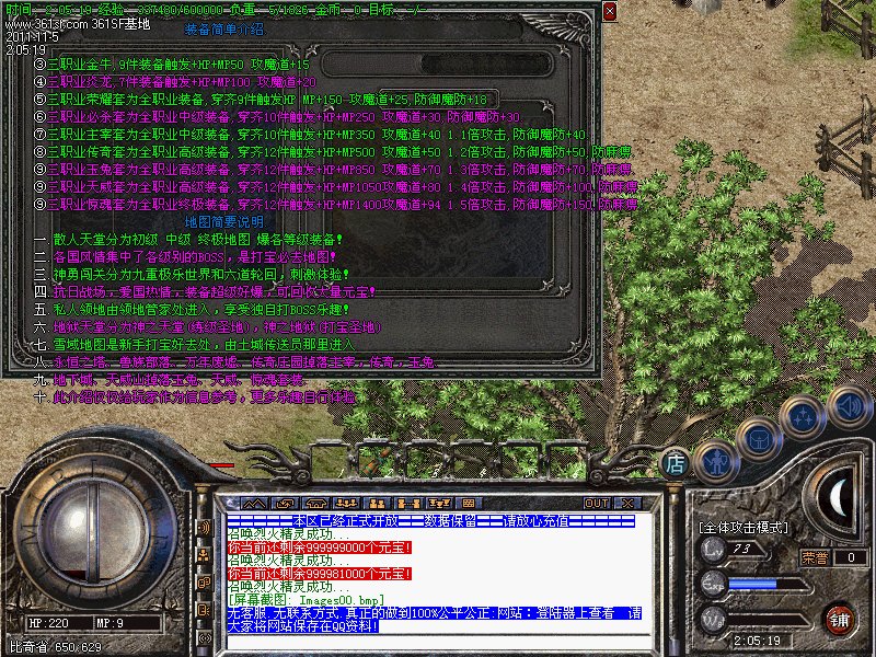 三.【特色活动】每天一次的活动.斩杀任意怪物500只可获得500元宝的奖励.元宝自动增加在身上.注意查收!