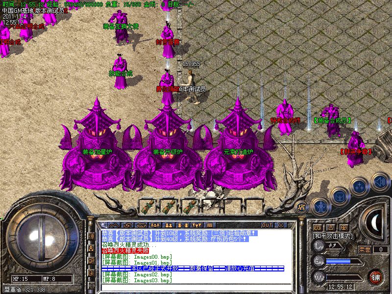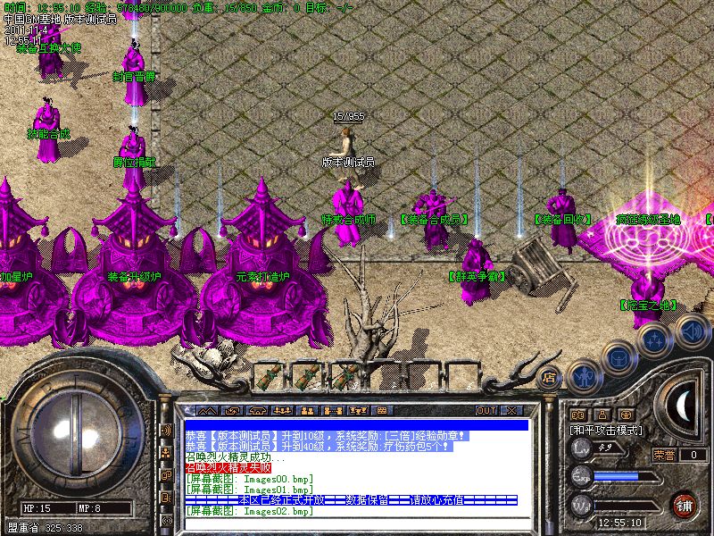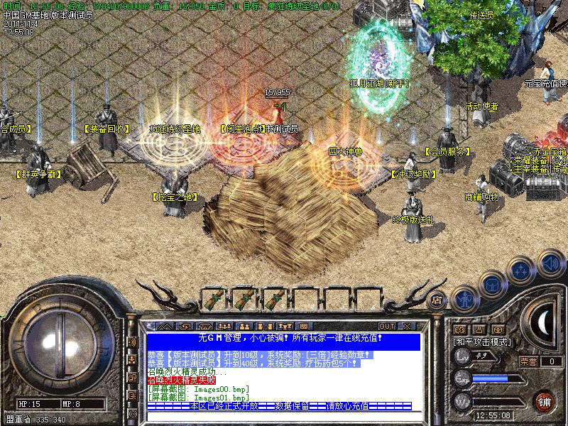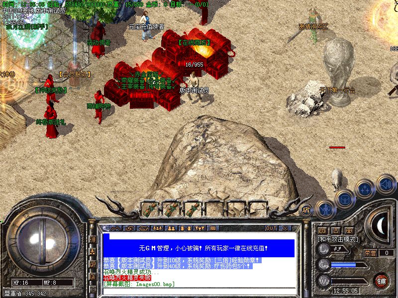 八.【特殊刷新】:用魔法神石在土药旁边的魔法结阵可召唤出蚩尤.同时可获得丰富的奖品.--即本服的所有装备都可送出!