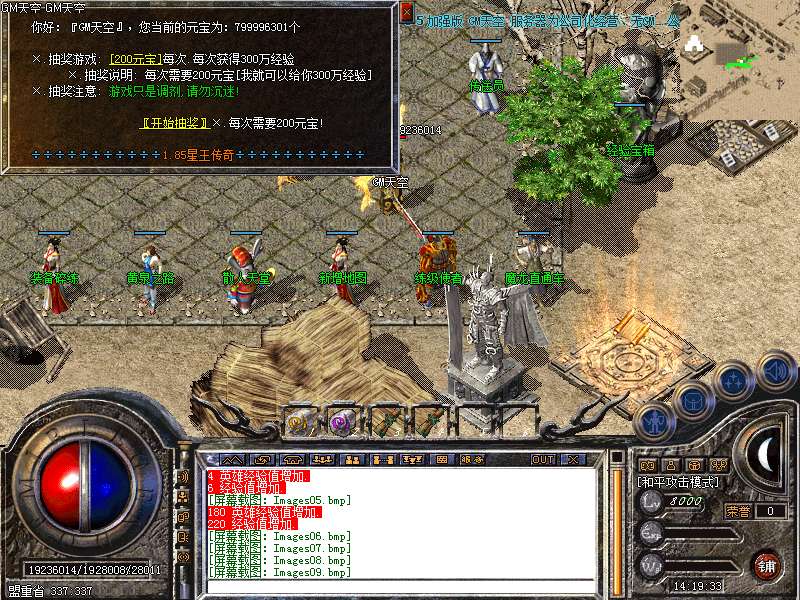 服务器元宝价格: 本服元宝比列最高1:200点卡送25%网银送50%本服无GM纯绿色。冲值请直接在游戏里通过短信冲值或进入官方网站网站登陆器查询/进行冲值!