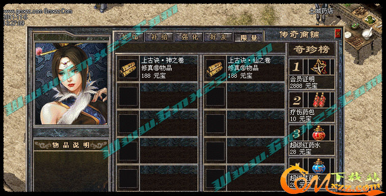 物品可以叠接,强化石精炼石都可以叠加,帮你大量的节约包裹的空间,详细使用方法在土城的宝石说明处查看吧!