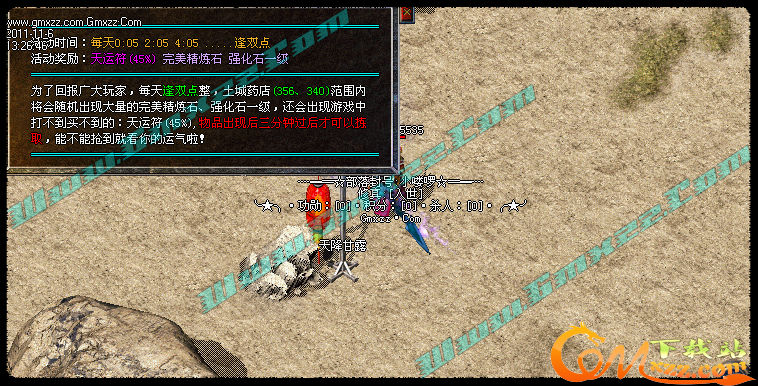 每天逢双点05分的时候都有天降甘露的活动,期间土城药店前面会出现大量游戏中的道具,三分钟后就可以拣取物品!