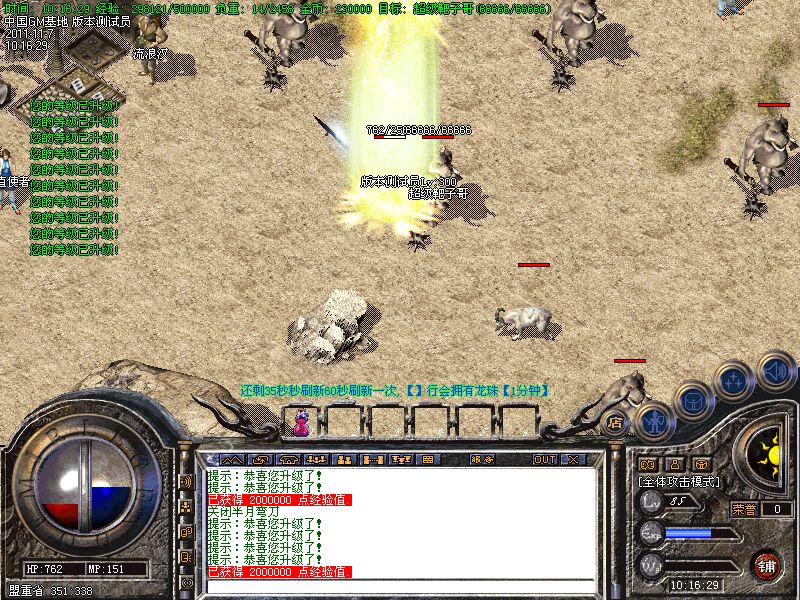 【公告】:老区攻沙每天一次,每次奖励100W元宝,新区攻沙奖励300W元宝+极品装备!