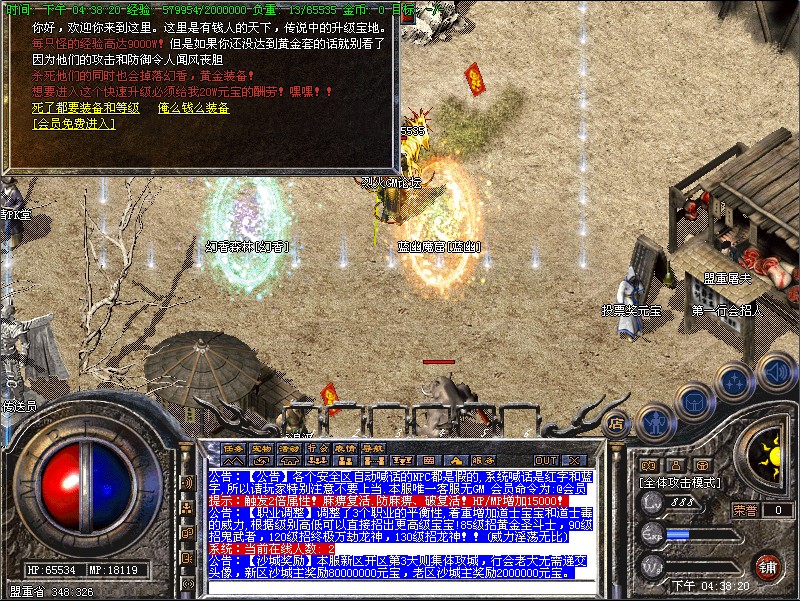 【公告】各个安全区自动喊话的NPC都是假的,系统喊话是红字和蓝字,所以请玩家特别注意不要上当.本服唯一客服无GM 会员命令为:@会员