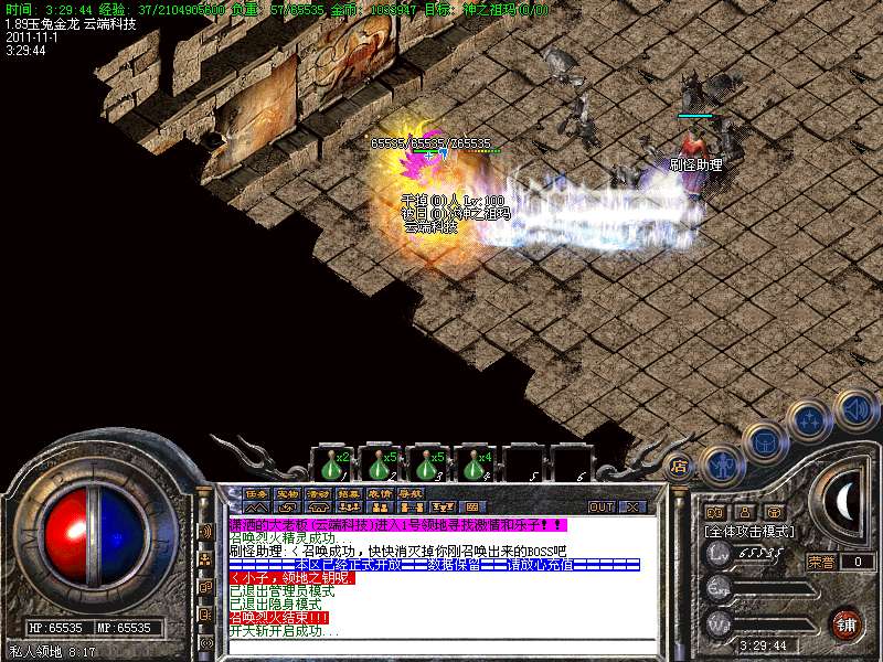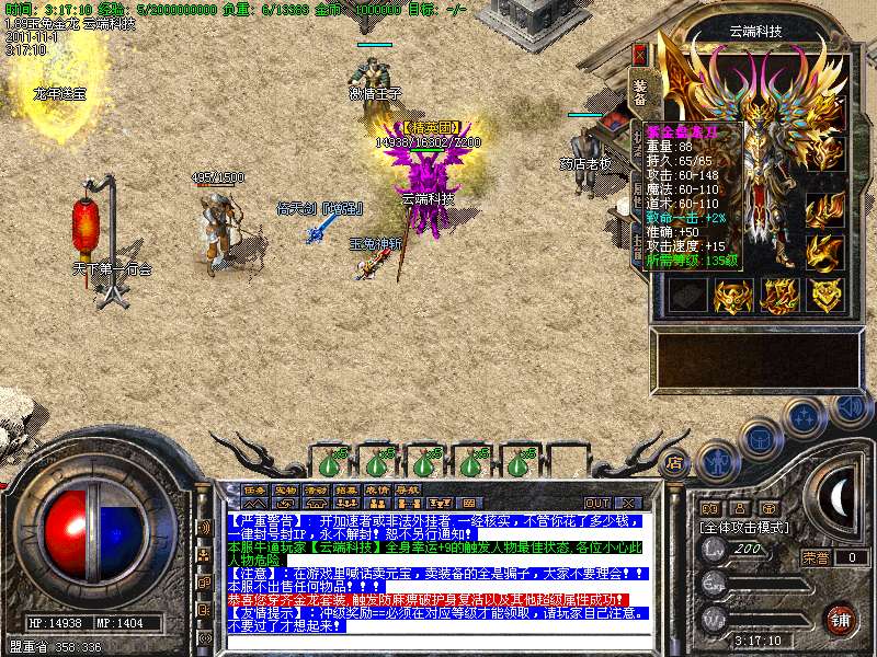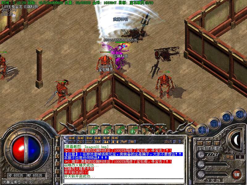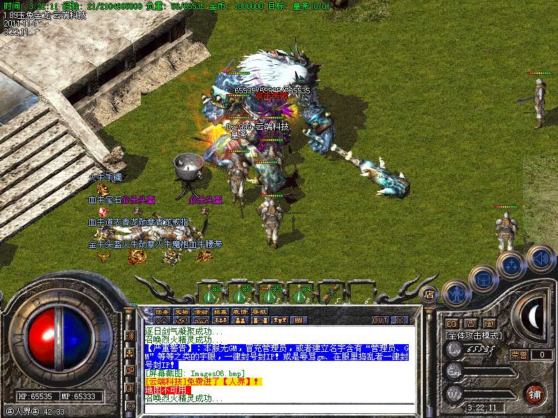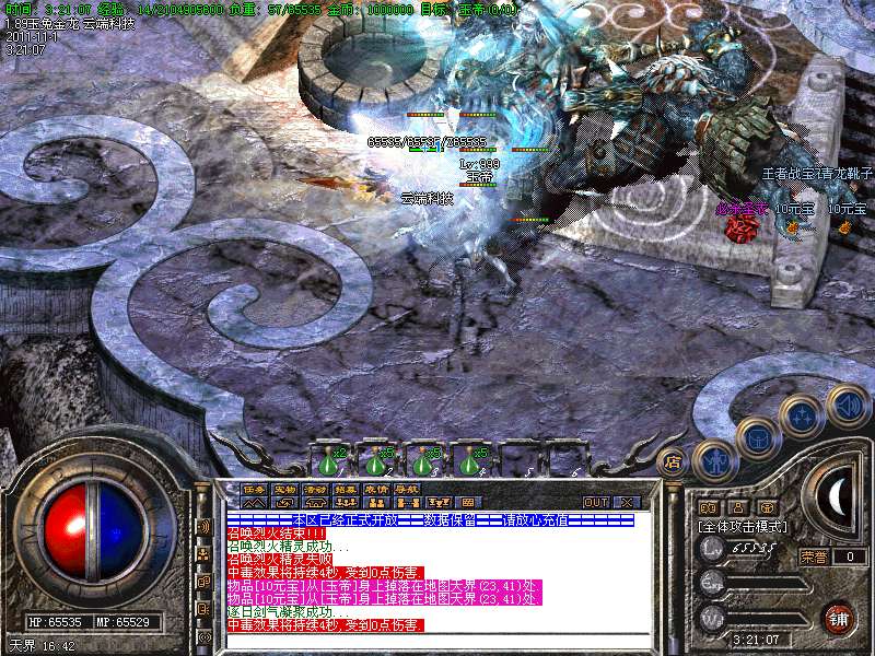 八.【特殊刷新】用魔法神石在土药旁边的魔法结阵可召唤出蚩尤.同时可获得丰富的奖品.--即本服的所有装备都可送出!