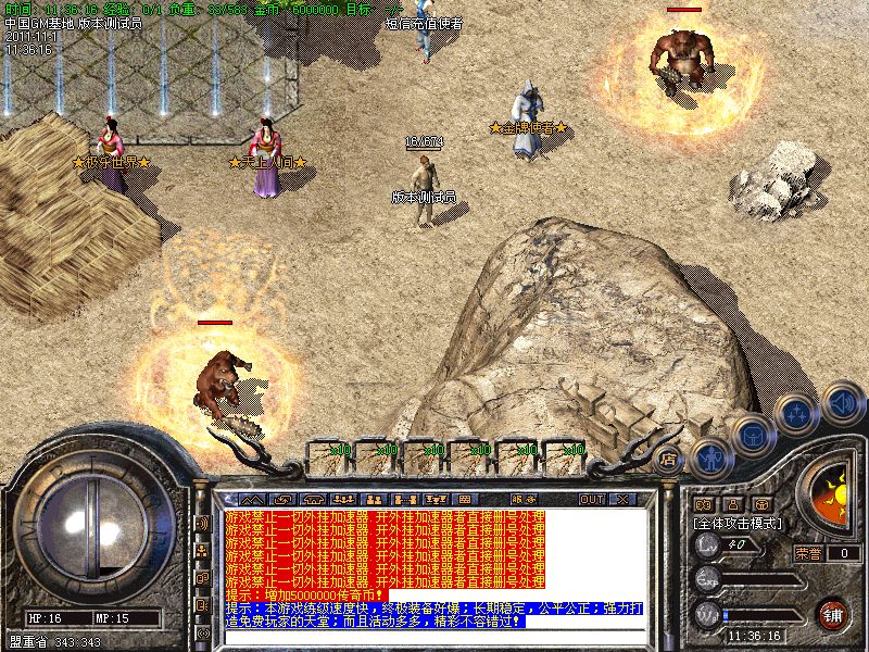 关于攻沙奖励的公告:新区第一任沙巴克城主奖励:150万元宝;老区(合区后)攻沙的奖励为:50万元宝;老区天天攻沙,让大家激情爽歪歪!