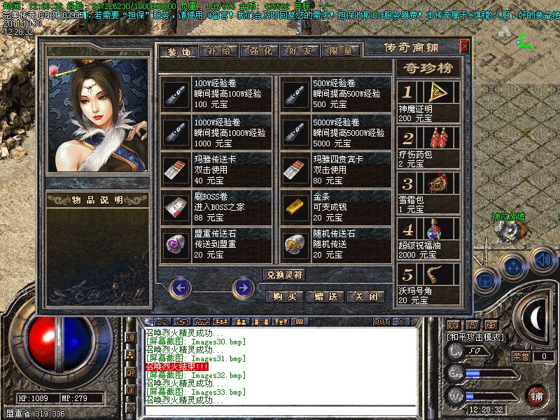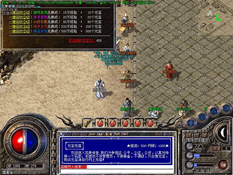 [元宝回收] 多余的装备可以兑换元宝经验等不同的奖励.