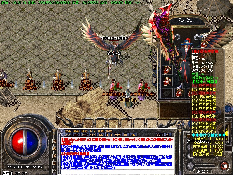 【公告】:本服等级好升,玩家上线进入安全闭关,一小时就能挂到300级,方便玩家快速上手.免费泡点可以泡点1000级.本服终极套激发人物300WHP。