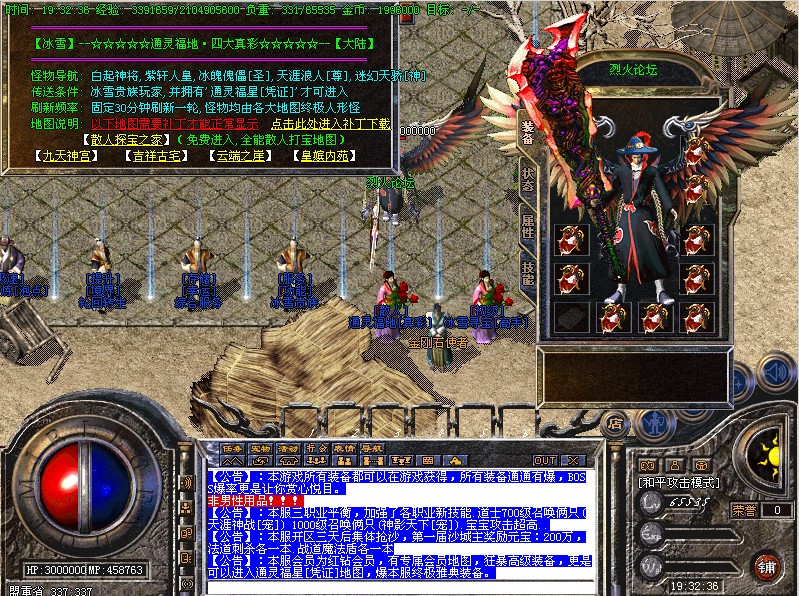 【公告】:本服三职业平衡,加强了各职业新技能.道士700级召唤俩只(天涯神战[宠]) 1000级召唤俩只(神影天下[宠]).宝宝攻击超高..