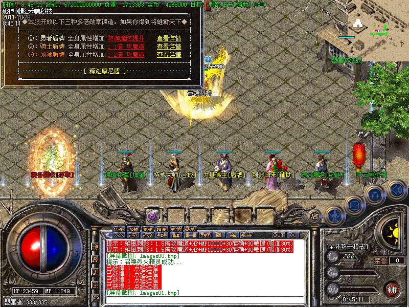 【更新】财富劫阵,BOSS爆出财富神石可以启动财富阵,启动的同时可以随机获得元宝!!满188层土药将会出现大量的元宝!!具体请查看土城财富劫阵NPC!!