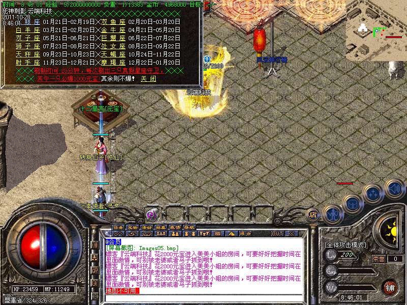 【更新】增加12星座,每20分钟每个星座刷3只守卫,其中一只为真,杀死必爆1000元宝!!