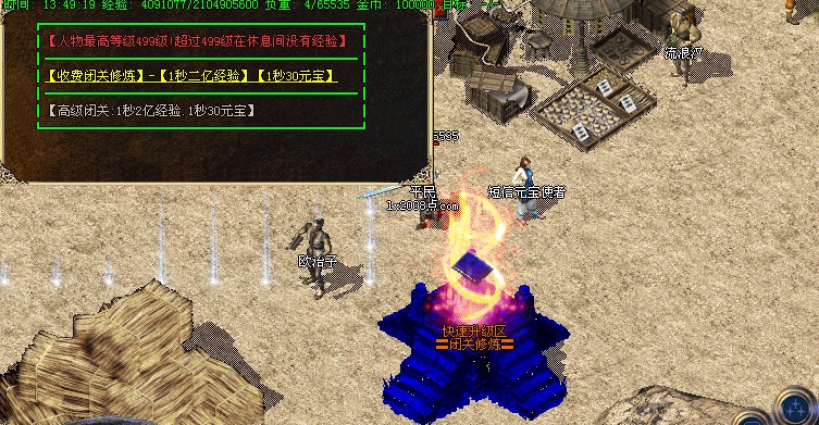 本服30分钟举行一次 刺杀金刚石使者 活动,杀死必暴金刚石和元宝!