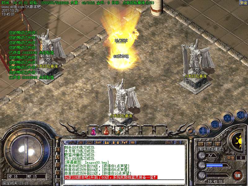 【公告】:本服等级好升,玩家上线进入安全闭关,一小时就能挂到300级,方便玩家快速上手.免费泡点可以泡点1000级.本服终极套激发人物300WHP。