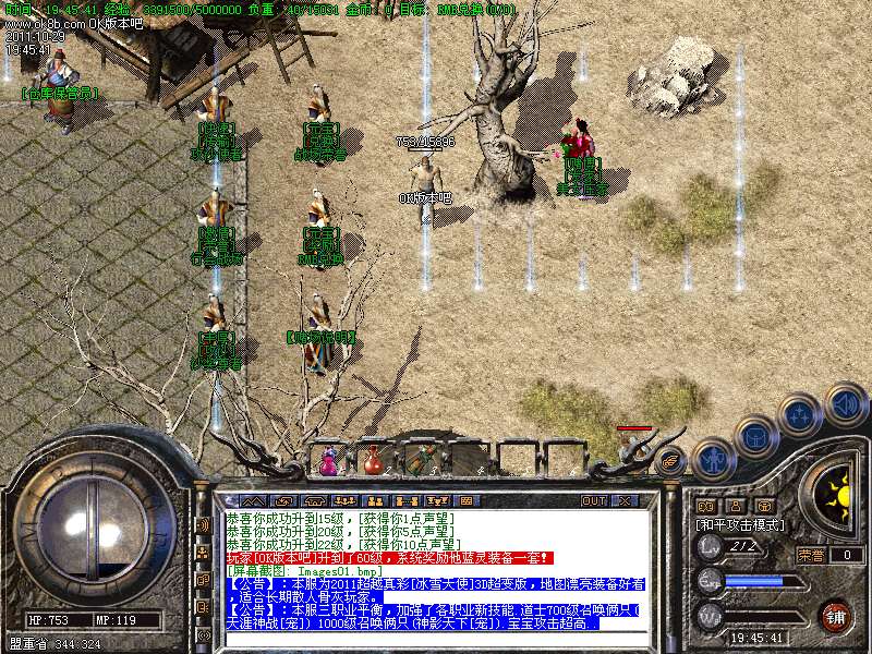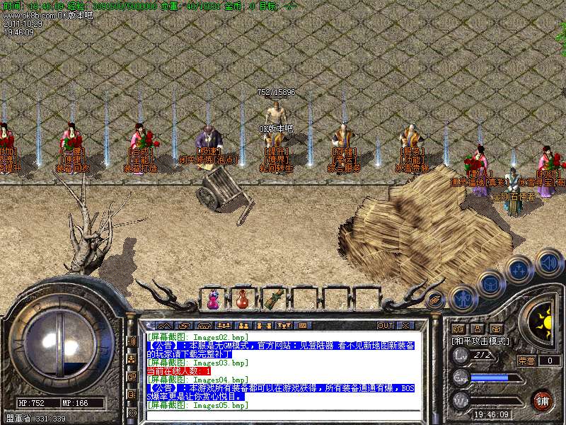 【公告】:行会战场两小时举行一次,可以进去半个小时,每30秒增加100点荣誉值和300万经验,荣誉值可以直接换元宝。