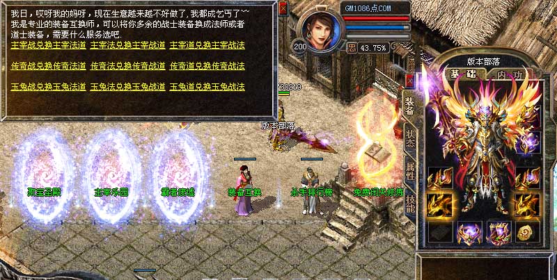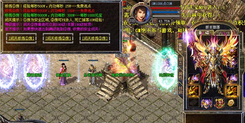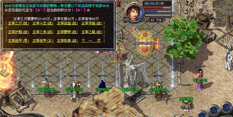 积分系统:本服凭积分可以换取主宰以下装备,有兴趣的玩家可以点击积分奖励使者或富翁排行榜查看积分奖励内容。再次声明:GM绝不参与游戏,和玩家进行任何形式的交易。。请各位玩家小心。游戏内有自称是GM的,一定是骗子。