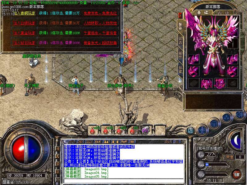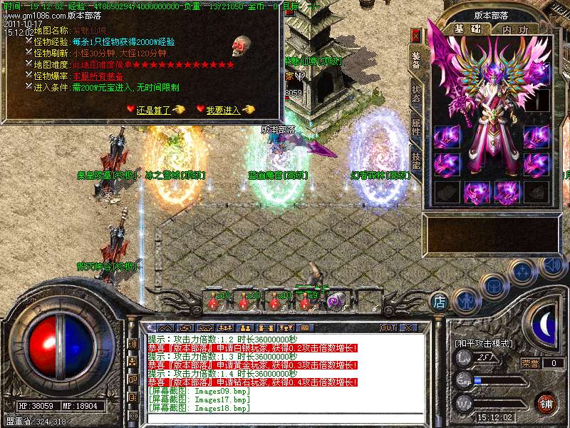 【更新】财富劫阵,BOSS爆出财富神石可以启动财富阵,启动的同时可以随机获得元宝!!满188层土药将会出现大量的元宝!!具体请查看土城财富劫阵NPC!!