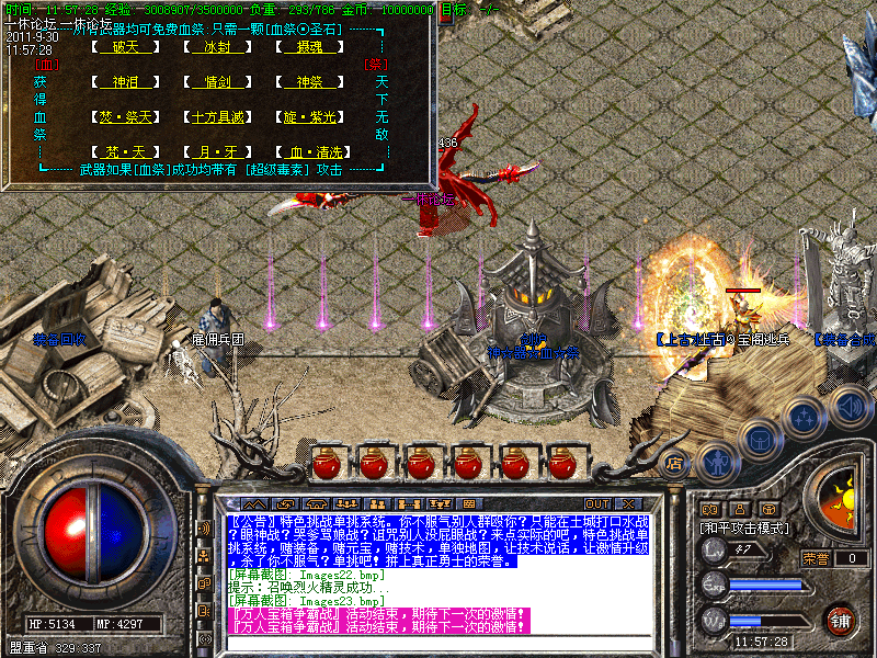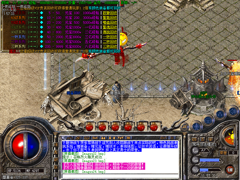快速升级地图为日本大营和赤壁,怪物经验每只都有1000W以上。