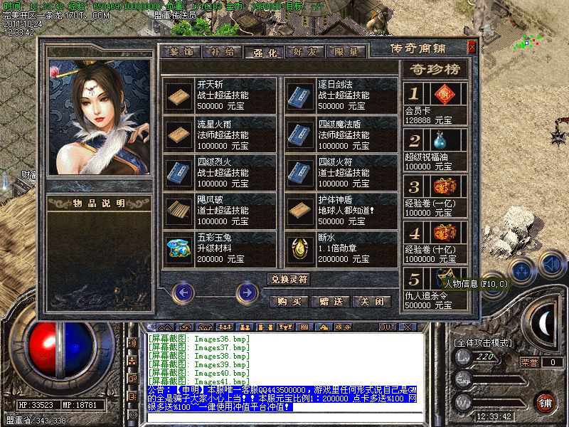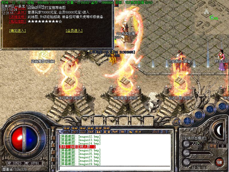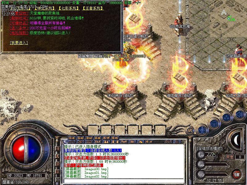 【特色地图】更新【七彩王者】【七彩天宫】【神龙境地】【仙龙之路】.此地图可爆终极装备!点击土NPC可进入!!!