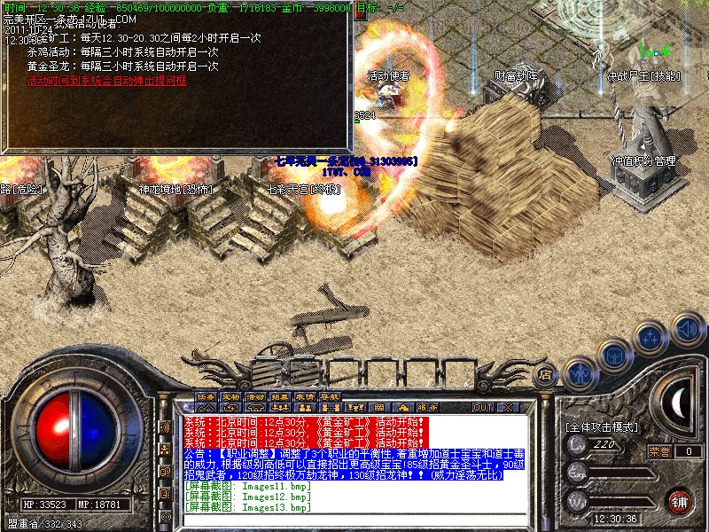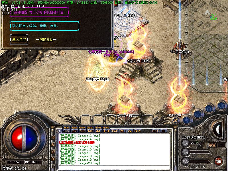 ①.【黄金矿工】:每天12.30-20.30之间每2小时开启一次,元宝经验装备,大放送