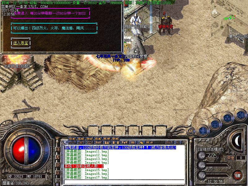 【决战尸王】每20分钟刷新一次,可以爆出四级烈火,灵魂,四级盾,飓风,流星火雨..等等技能书!!