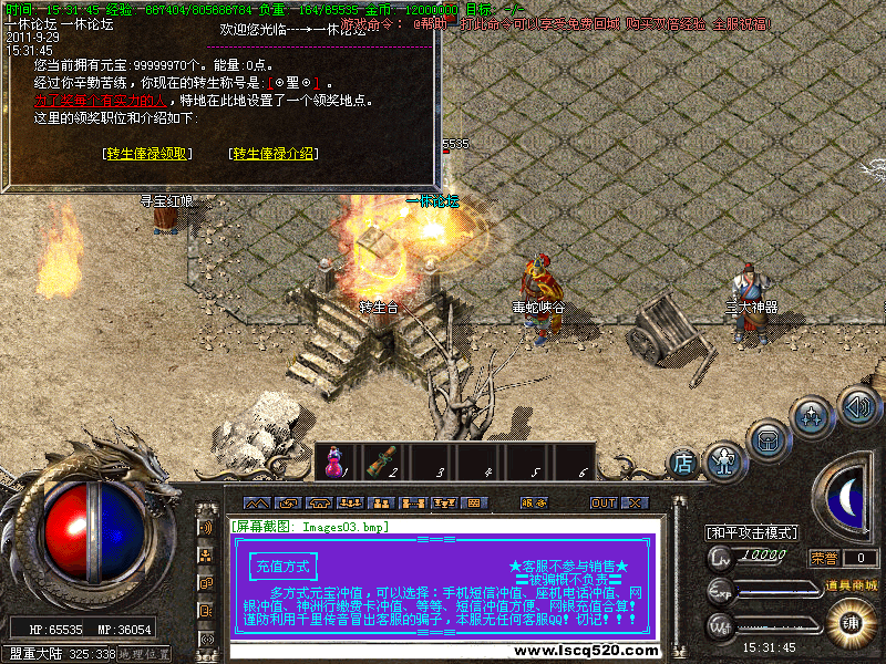 经验为盛大的500倍在传送员处直接传送到各地图的中层,免得一层一层的跑去麻烦.
