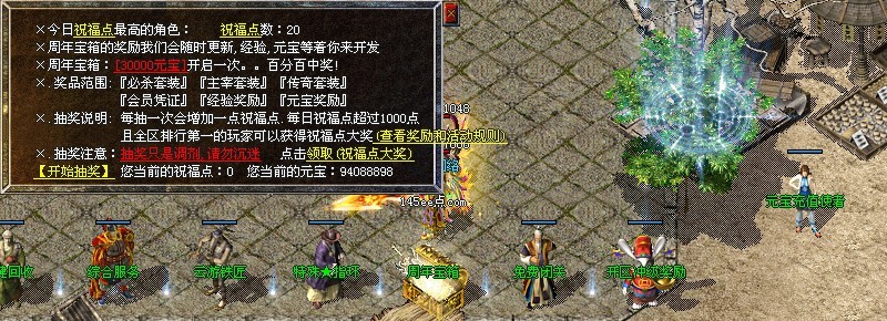 每小时[土药店门口]会有掉落大量元宝的[元宝树]刷出
