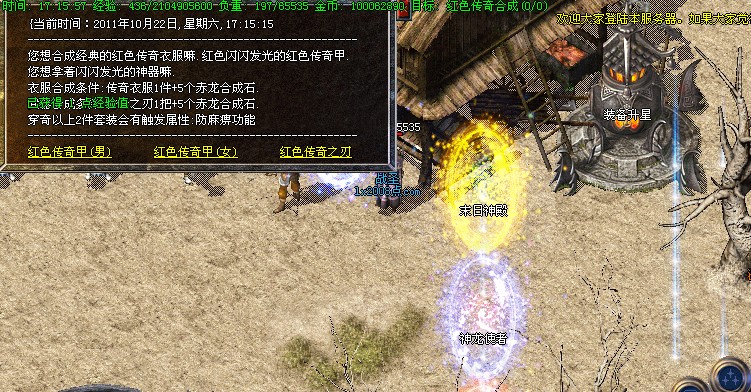 2. 欢迎您进入雷霆网络游戏.玩家看不到装备补丁的请更新热血传奇21区.更新完毕后运行官方登陆器就可以看到本游戏装备了