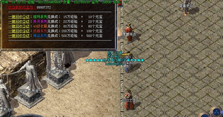 说明:祖玛装备暴率较高,并且可以回收成元宝和经验.
