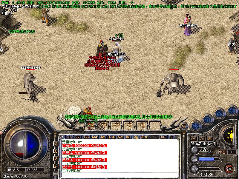 盟重土药抢宝点里可爆率传说中的装备和[心][想][事][成][财][源][广][进]八个字,集齐这八个字后可换取100000元宝!