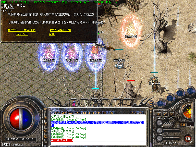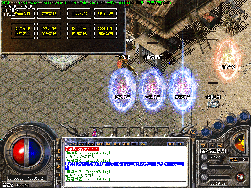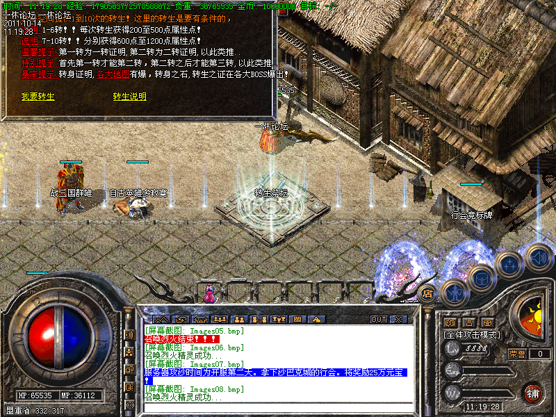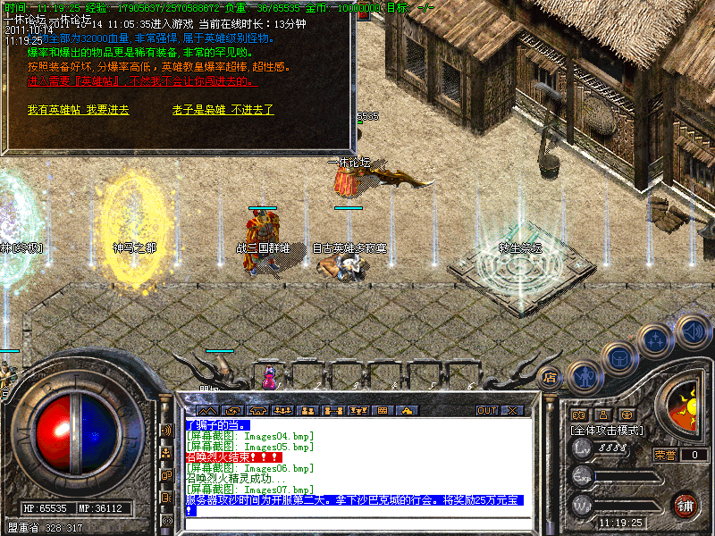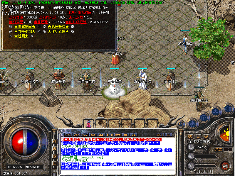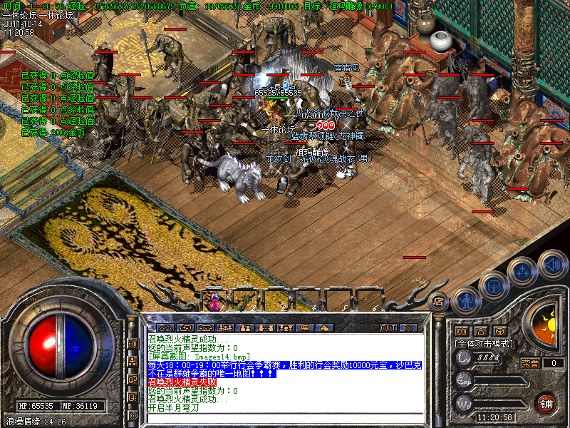 每天18:00-19:00举行行会争霸赛,胜利的行会奖励10000元宝,沙巴克不在是群雄争霸的唯一地图!!!【公告】:新增霸气九渊系列。穿起了9件能触发HP/MP5000 攻魔道1000隐藏属性。