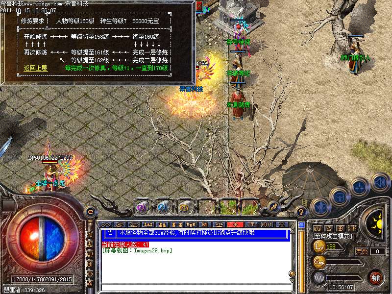 47级以上玩家 还可以组队参加酒馆的 火龙任务 完成奖励一亿经验 火龙神还会爆出虎啸 聚魔 符咒